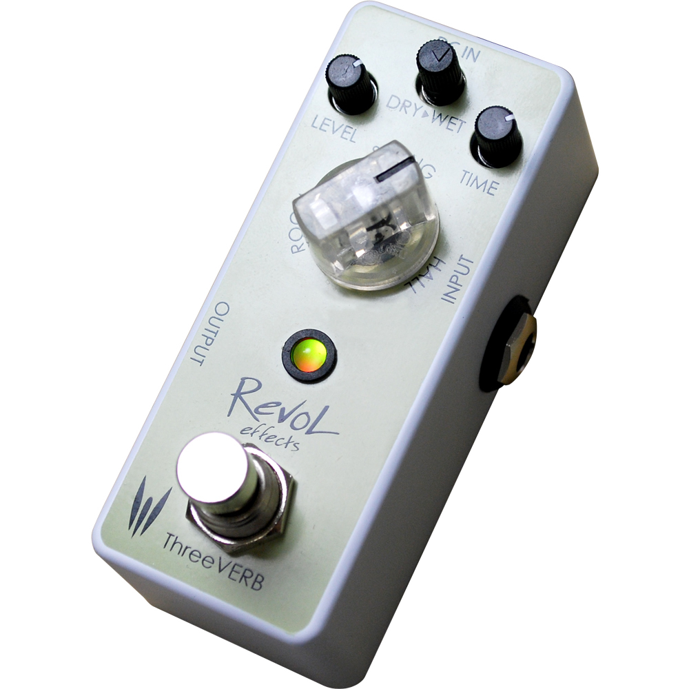 ThreeVERB ERV-01は、ROOM、SPRING、HALLの3種類のモードを搭載したリバーブエフェクターです。