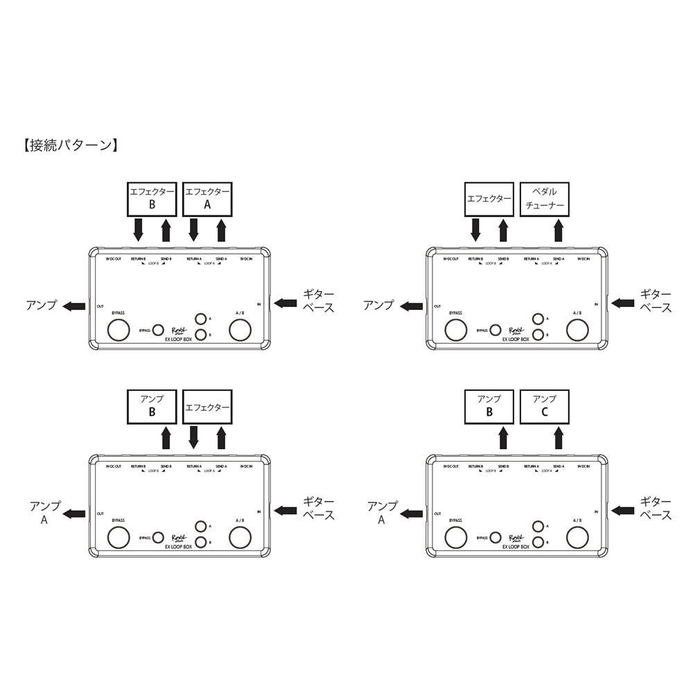 EX LOOP BOX ELP-BOXは2つのLOOPチャンネルを切り替え、バイパスも可能な簡易スイッチャーです。